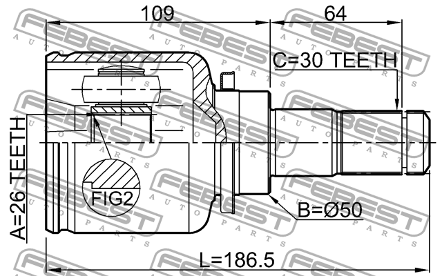 0511-BK23LH FEBEST ШРУС внутренний левый 26x50x30