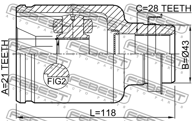 0511-DY5WATRH FEBEST ШРУС внутренний правый 21X43X28 MAZDA DEMIO DY3/DY5 2002-2007 0511-DY5WATRH