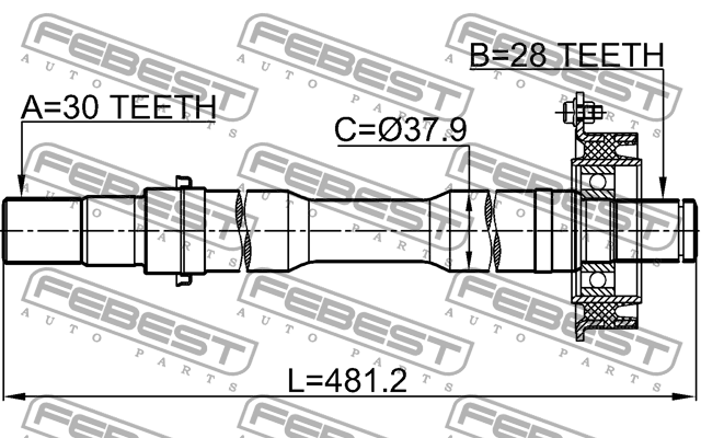 0512MPVRH FEBEST Полуось правая 30X482X28 MAZDA MPV LW 1999-2006 0512-MPVRH
