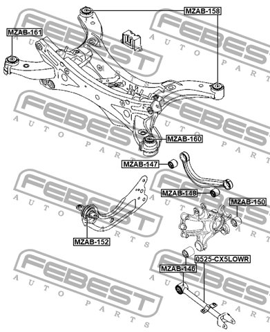 0525-CX5LOWR FEBEST Тяга MAZDA CX-5 (12-17) подвески задней поперечная левая/правая FEBEST