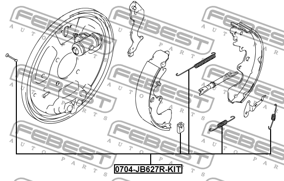 0704-JB627R-KIT FEBEST Ремкомплект монтажный барабанных колодок SUZUKI SX4, LIANA, BALENO, GRAND VITARA