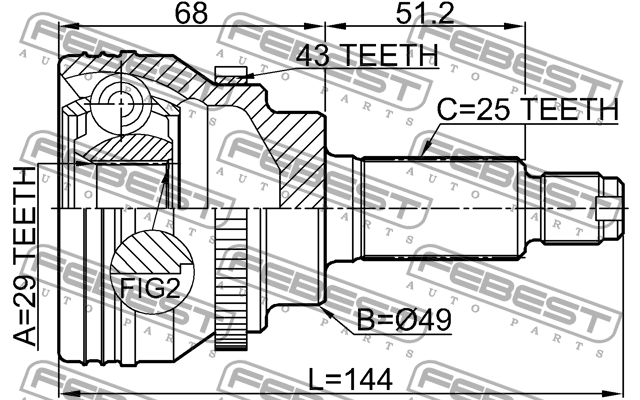 0710IGN29A43 FEBEST ШРУС наружный SUZUKI IGNIS RG413/RG415/RM413/RM415 00-08 0710-IGN29A43