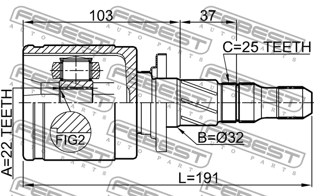 0811-B12R FEBEST ШРУС внутр задний SUBARU IMPREZA G10 1992-2002 0811-B12R