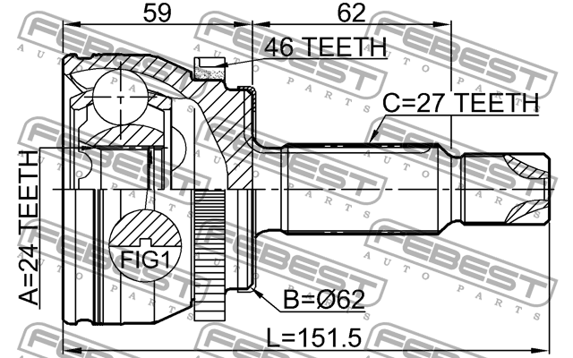 1210-CRE20A46 FEBEST ШРУС наружный 24X64.5X27