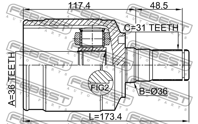 1211CM10LH FEBEST ШРУС внутр левый HYUNDAI SANTA FE 10 (2010-) 1211-CM10LH