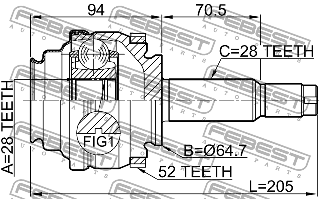 1410-REXA52R FEBEST ШРУС внешн задний 28X64.7X28 SSANG YONG KYRON 2005-2012 1410-REXA52R