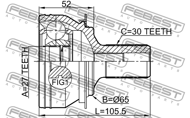 1610246 FEBEST ШРУС наружный 27x65x30 MERCEDES BENZ A CLASS W176 1610-246