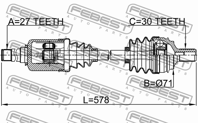 1614-221FRH FEBEST Привод передн правый 27X578X30 MERCEDES BENZ W212 4 MATIC 2008-2013 1614-221FRH