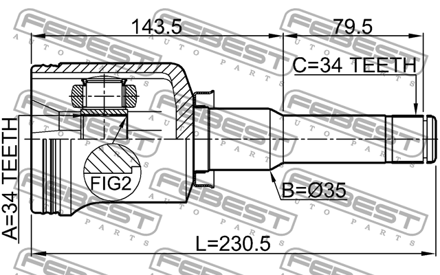 1811-ANTLH FEBEST ШРУС ВНУТРЕННИЙ ЛЕВЫЙ 34X35X34 подходит для CHEVROLET CAPTIVA 2010- [EU] 1811-AN
