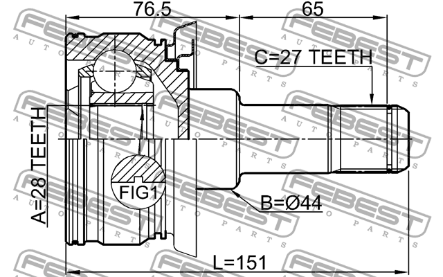 1911-E70RR FEBEST ШРУС ВНУТРЕННИЙ ЗАДНИЙ 28X44X27 подходит для BMW X5 E70 2006-2013 1911-E70RR
