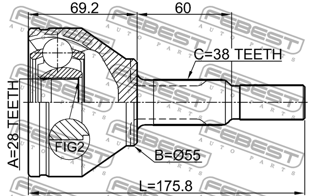 2110-EXPL FEBEST ШРУС наружный 28X55X38 FORD EXPLORER V TUB 2011- 2110-EXPL