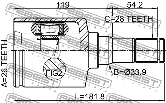 2111-CA2LH FEBEST ШРУС ВНУТРЕННИЙ ЛЕВЫЙ 26X33.9X28 подходит для FORD MONDEO CA2 2007-2014 [EU] 211