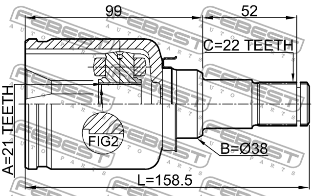 2111-FUSATLH FEBEST ШРУС внутр левый FORD FIESTA/FUSION (CBK) 2001-2008 2111-FUSATLH