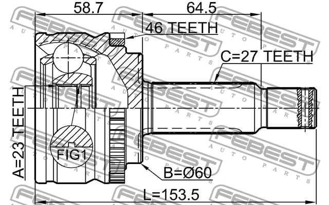 2210-CD20A46 FEBEST Шрус наружный 23x60x27