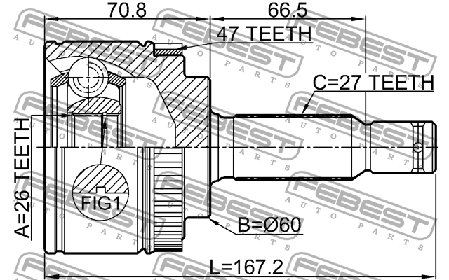 2210-OPIA47 FEBEST ШРУС внешний 26X60X27 KIA OPIRUS 2003-2006 2210-OPIA47
