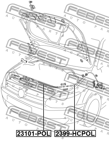 23101-POL FEBEST Трос привода открывания замка капота 23101-POL
