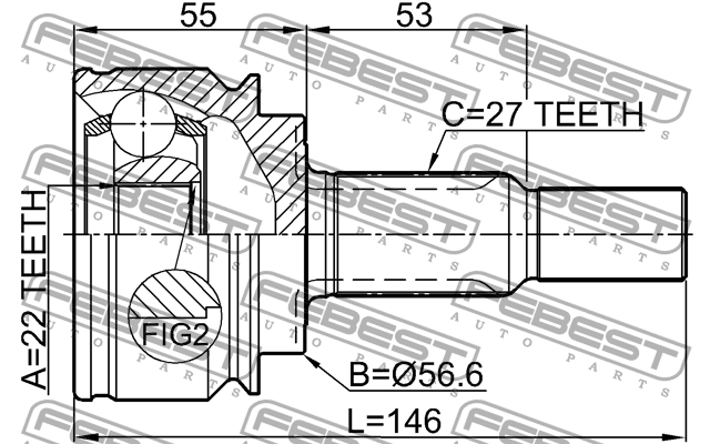 2410-KANII FEBEST ШРУС наружный 22X56.6X27 RENAULT KANGOO 2008- 2410-KANII