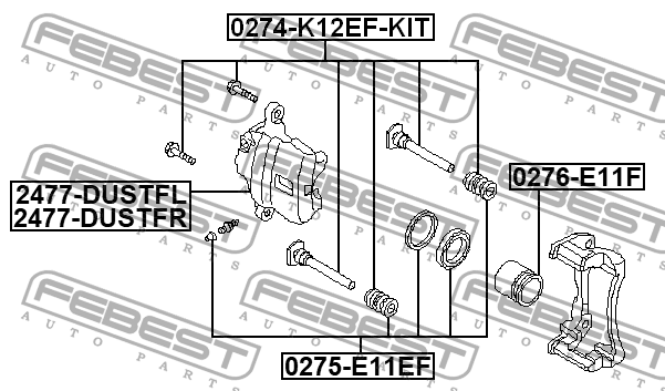 2477-DUSTFR FEBEST суппорт торм. передний правый!\ Lada Largus, Renault Captur/Clio/Duster/Logan 07