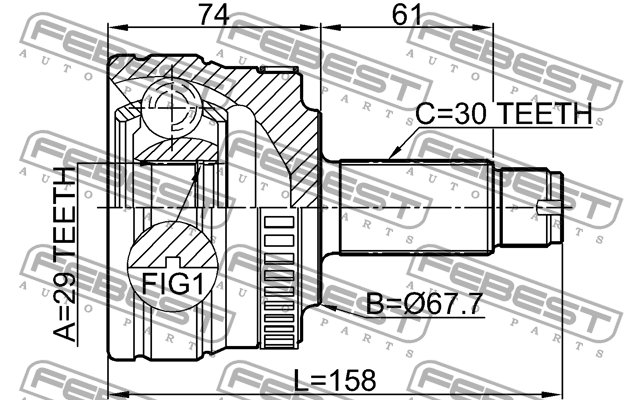 2910-RRIIIR FEBEST ШРУС внешний задний RANGE ROVER 2002-2012 2910-RRIIIR