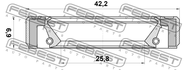 95GBY-27420707R FEBEST Сальник коробки скоростей 25.8x42.2x6.9x6.9 NISSAN QASHQAI 2006-2013 95GBY-27420