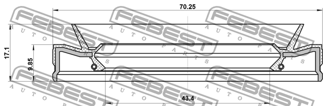 95HES-45701017R FEBEST САЛЬНИК КОРОБКИ СКОРОСТЕЙ 43.4X70.25X9.85X17.1 подходит для NISSAN FRONTIER D40
