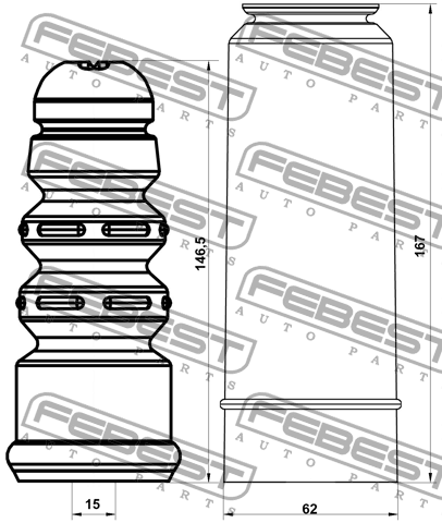 ADSHB-A4IIIR-KIT FEBEST Пыльник заднего амортизатора с отбойником комплект AUDI A4 2001-2008 ADSHB-A4III