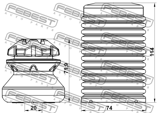 BMSHB-F10F-KIT FEBEST Пыльник передн амортизатора с отбойником комплект BMW 5 F10 2009-2016 BMSHB-F10