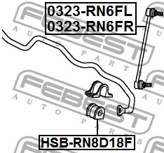 HSB-RN8D18F FEBEST Втулка стабилизатора передняя HONDA FIT 02-08, STREAM 07- HSB-RN8D18F