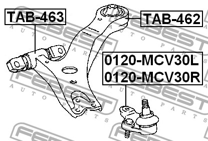 TAB-463 FEBEST Сайлентблок рычага передний LEXUS RX270/350/450H AGL10,GGL15,GYL1# 2008.12- TAB-