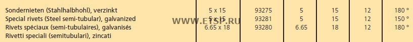 | Наименование | Заклепки 6,6х18 оцинк.сталь, полутрубчатые (Federal Mogul 93280 (1 штука) |