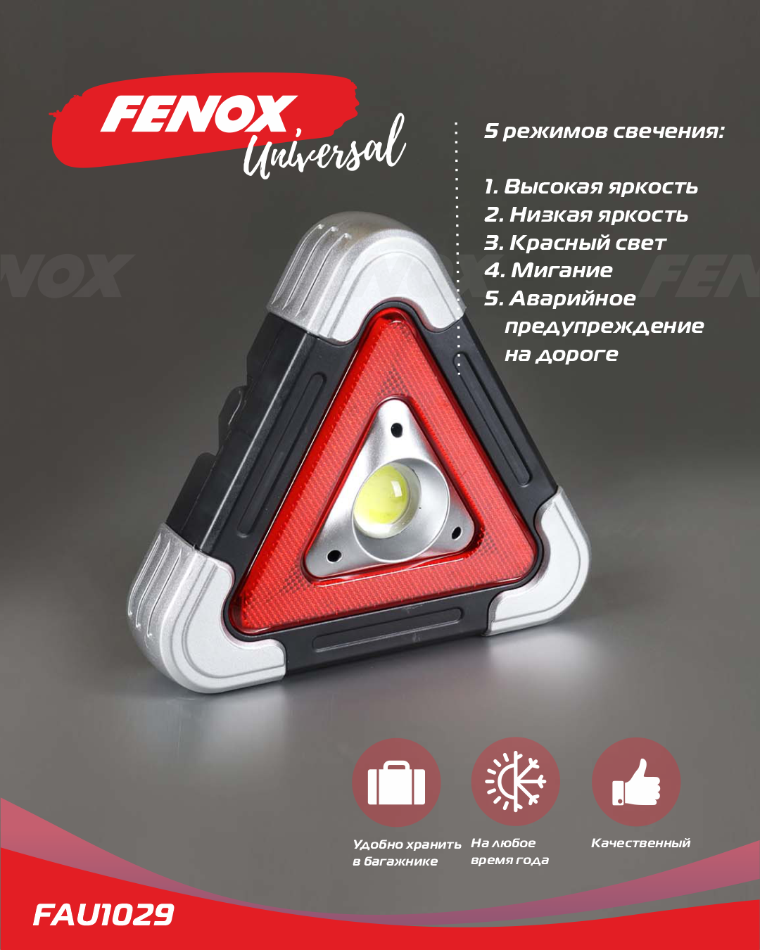 FAU1029 FENOX Фонарь - прожектор многофункциональный с аварийной подсветкой