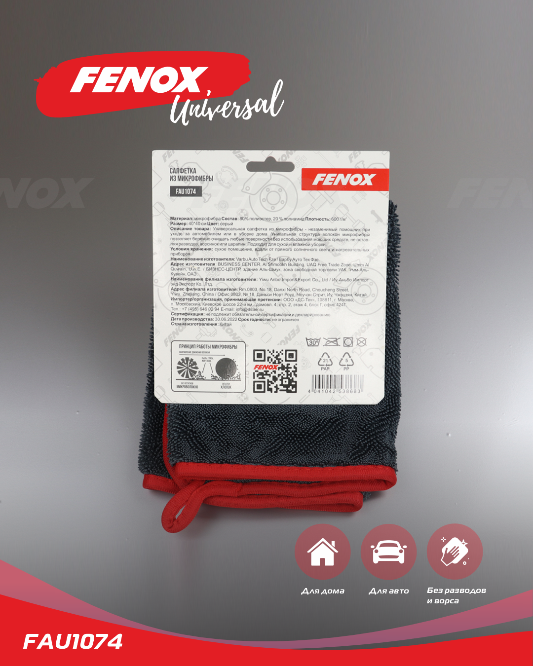FAU1074 FENOX салфетка из микрофибры!40x40см\