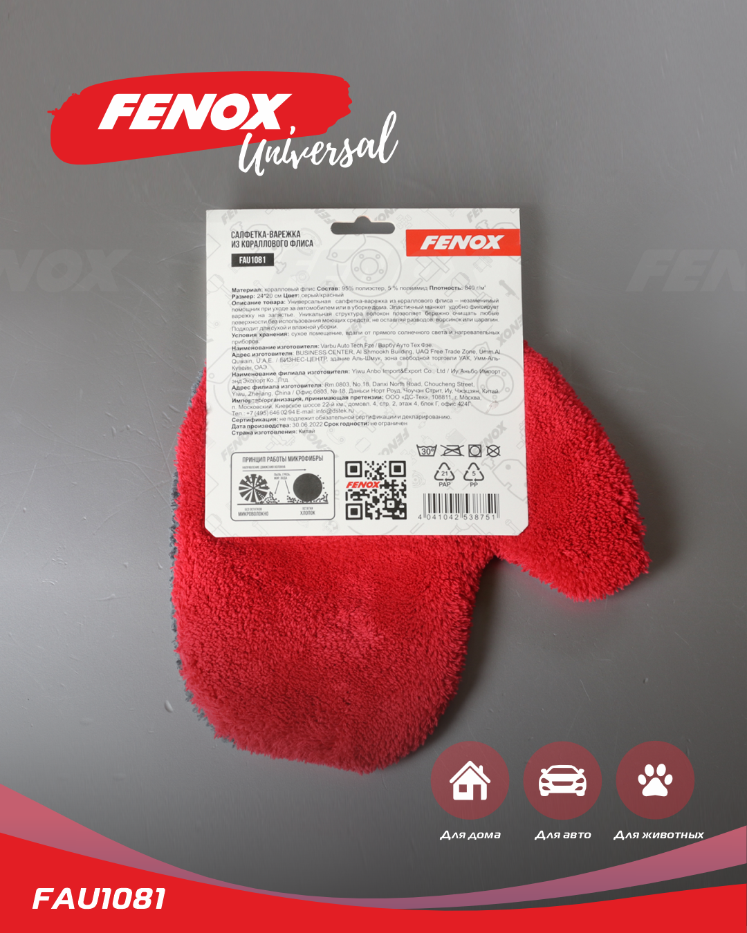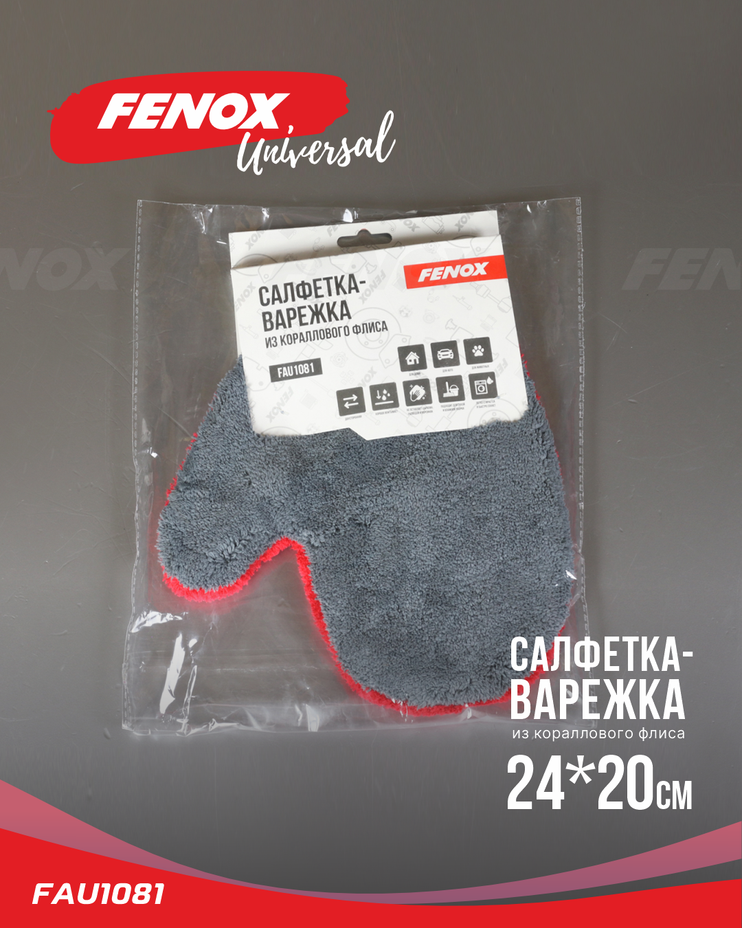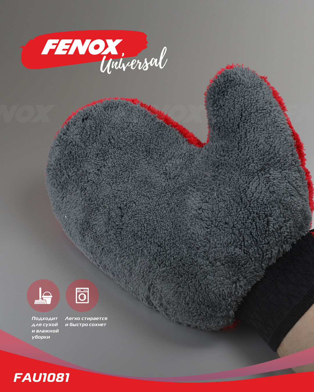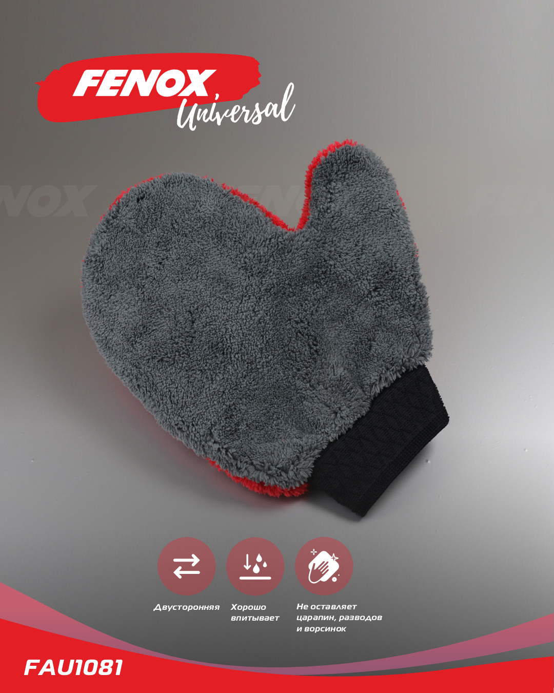 FAU1081 FENOX Варежка для мойки автомобиля красно-серая FENOX