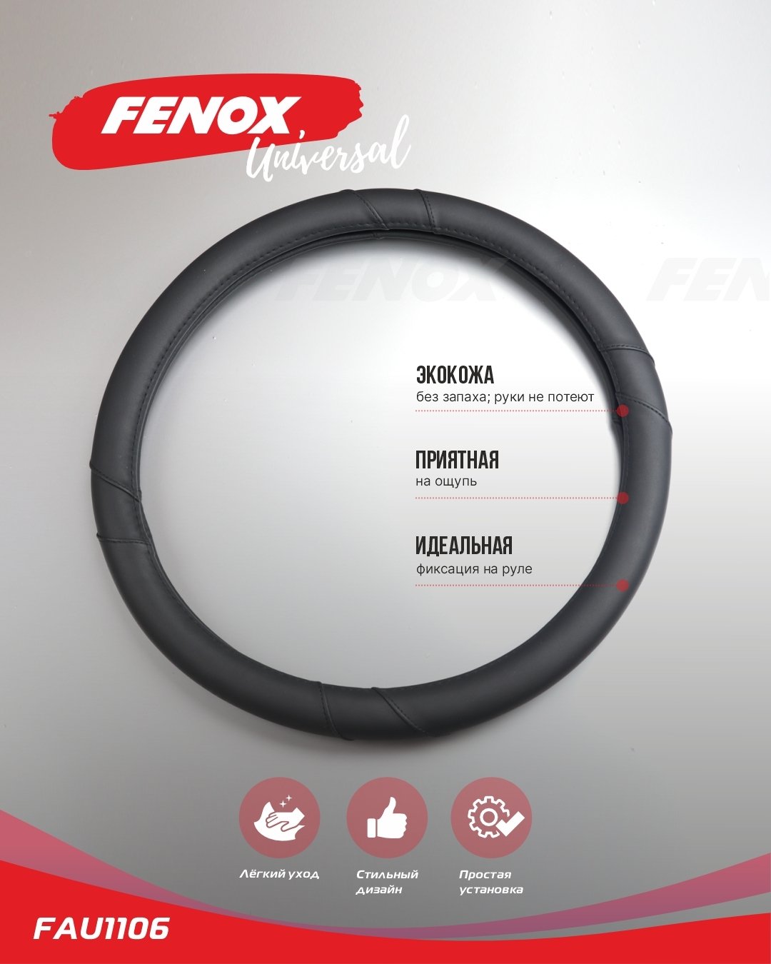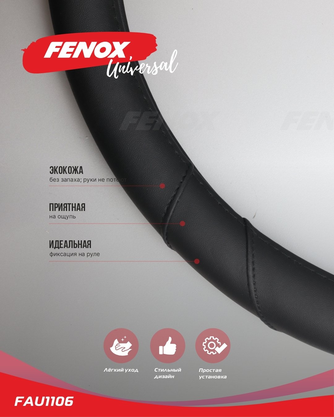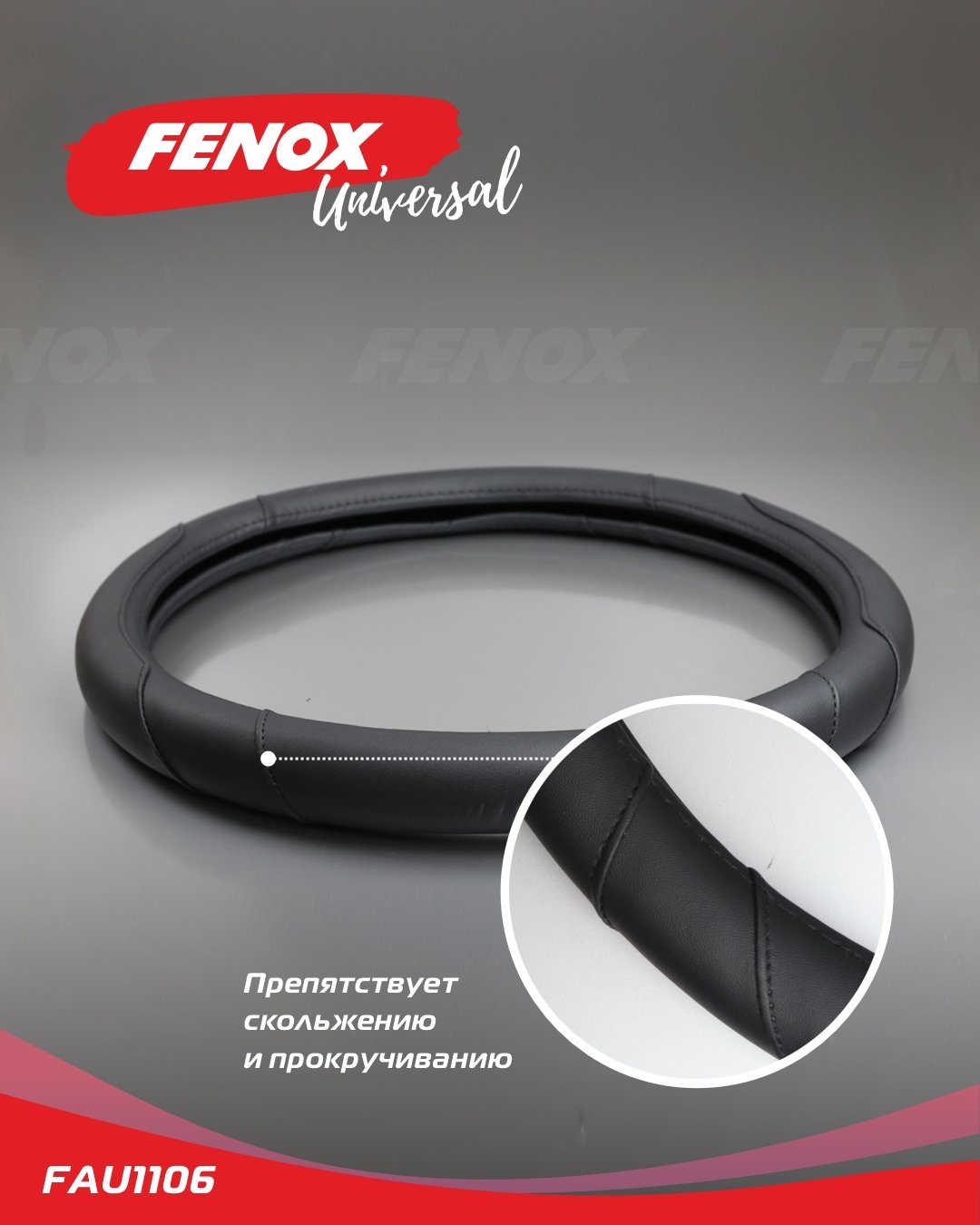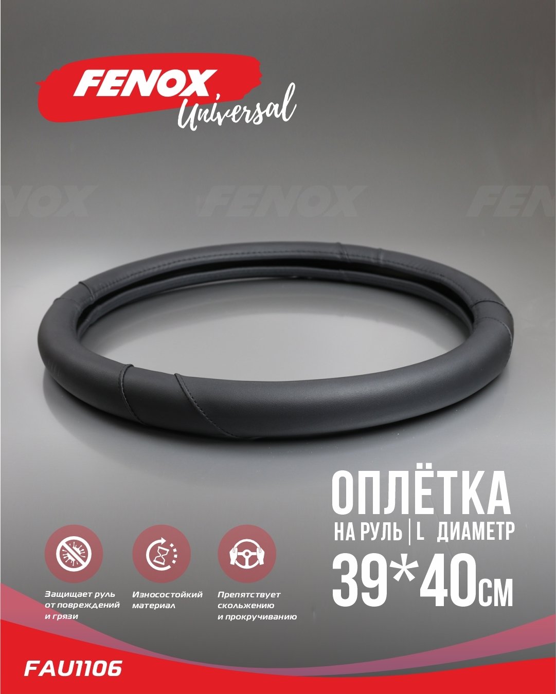 FAU1106 FENOX ОПЛЕТКА РУЛЕВОГО КОЛЕСА Размер: L, диаметр-39-40см, обхват-8см искусственная ко