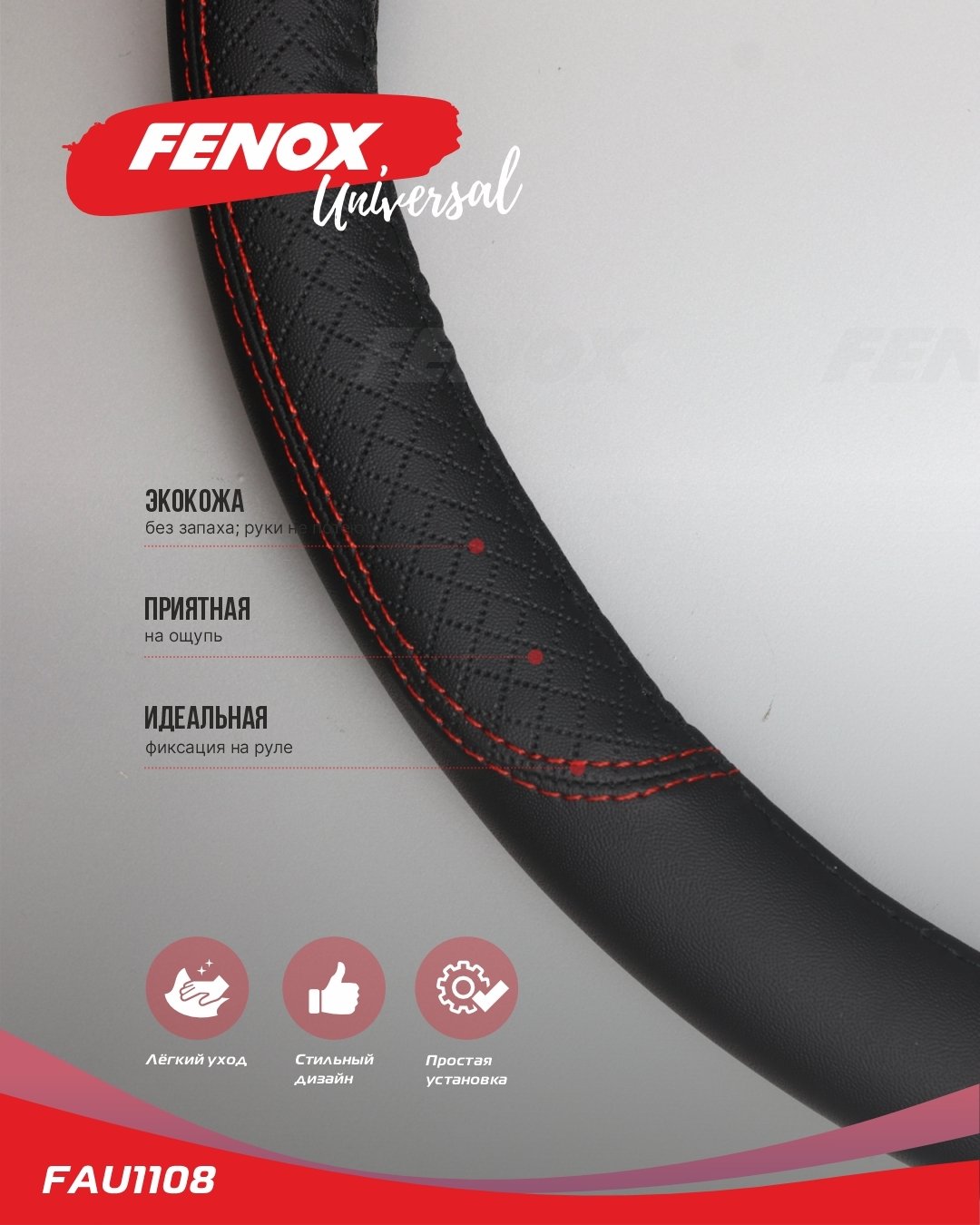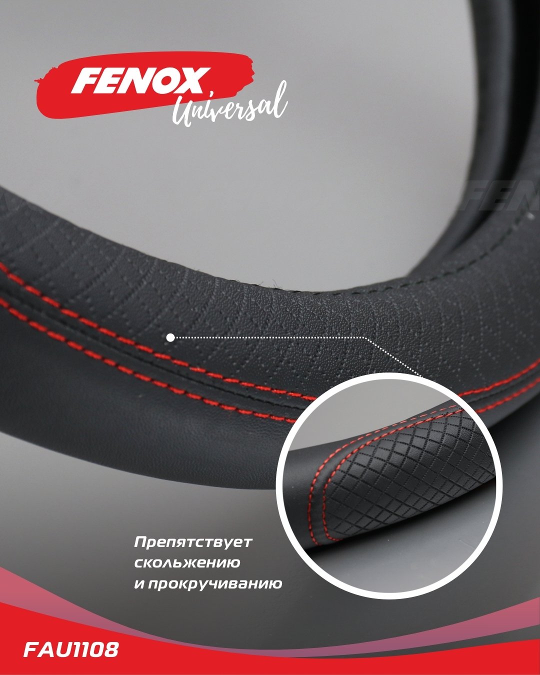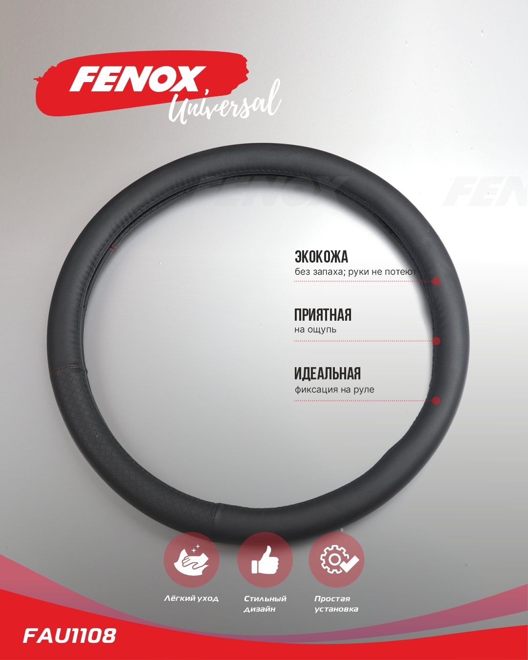 FAU1108 FENOX ОПЛЕТКА РУЛЕВОГО КОЛЕСА Размер: L, диаметр-39-40см, обхват-8см искусственная ко
