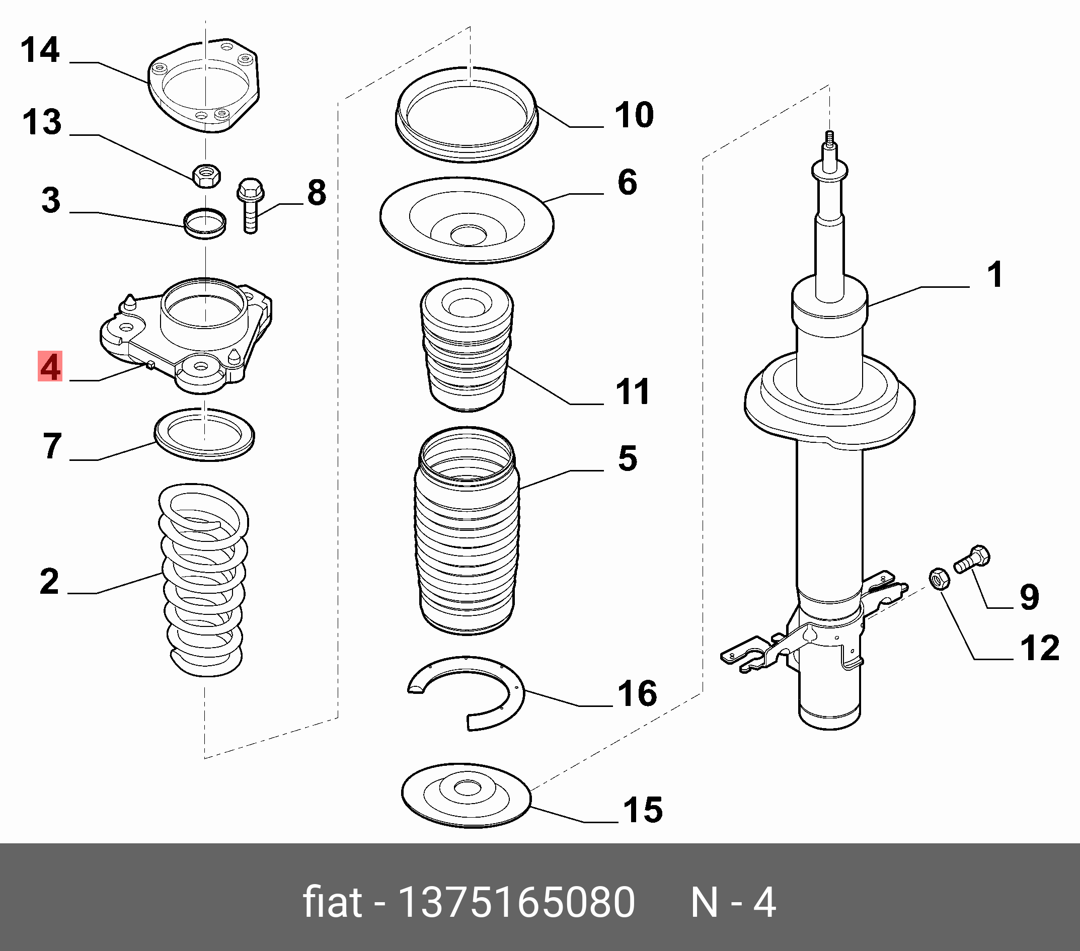 1375165080 FIAT ОПОРА ПЕРЕДНЕГО АМОРТИЗАТОРА, ЛЕВАЯ