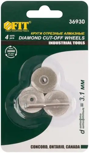 36930 FIT Набор кругов отрезных алмазных 22мм 3шт. + штифт для гравера FIT