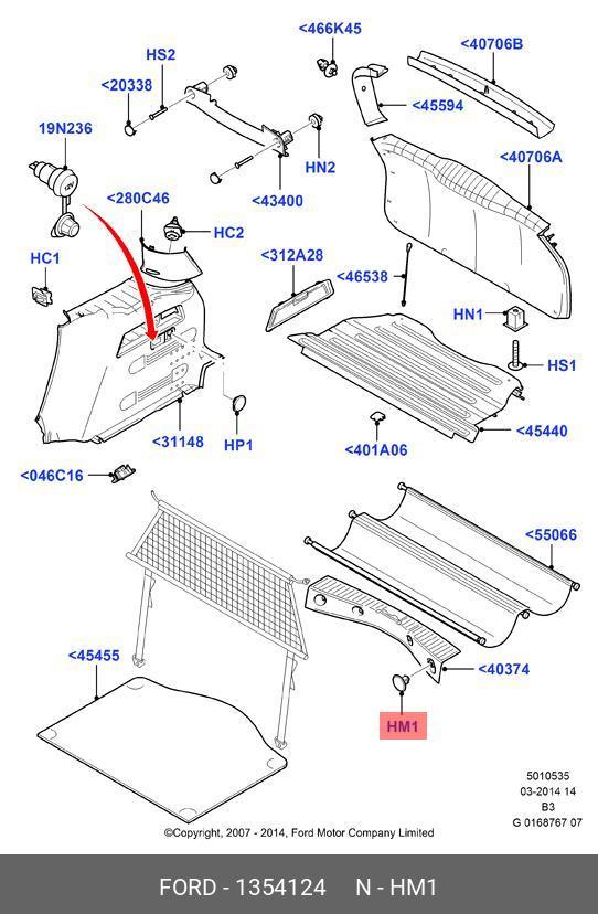 1 354 124 FORD Пистон FORD Focus (05-),C-Max (07-) обшивки багажника OE