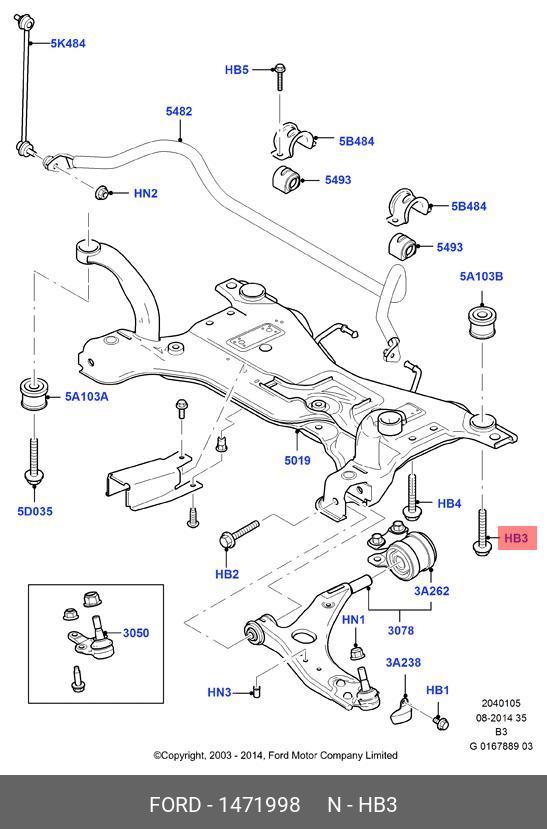 1 471 998 FORD болт переднего подрамника задний!М16Х87мм\ Ford