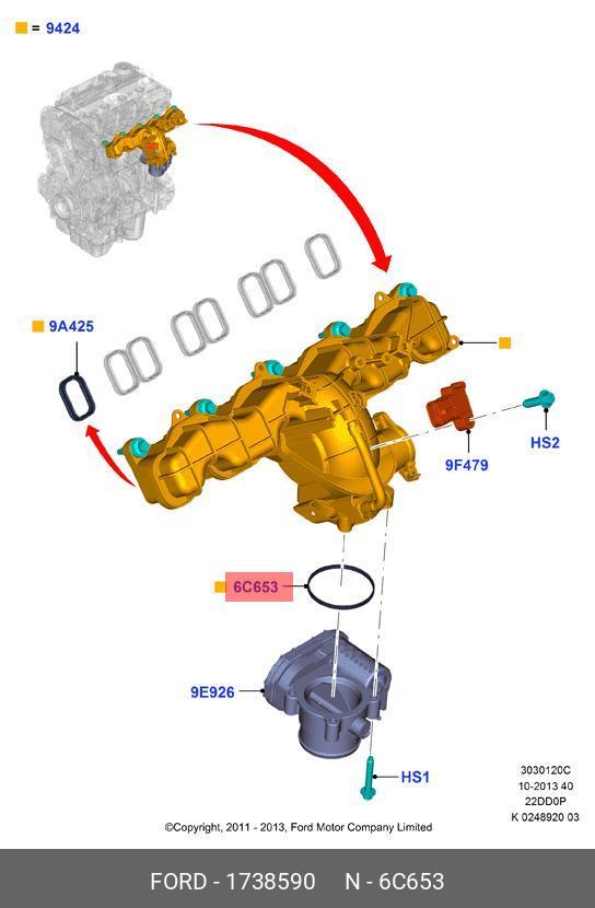 1 738 590 FORD Кольцо уплотнительное FORD Transit (06-) коллектора впускного OE