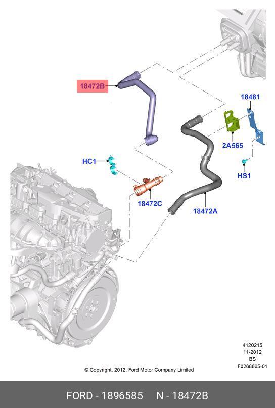 1 896 585 FORD патрубок системы охлаждения!\ Ford Kuga II 12>