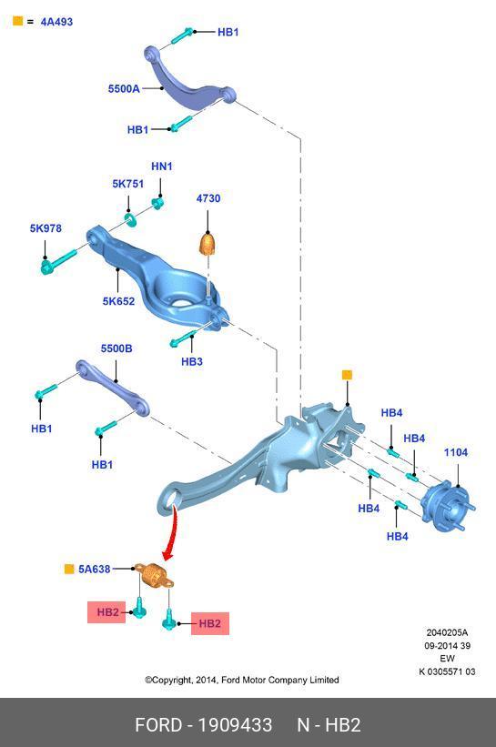 1 909 433 FORD Болт FORD Focus (11-),Kuga (12-) сайлентблока заднего OE