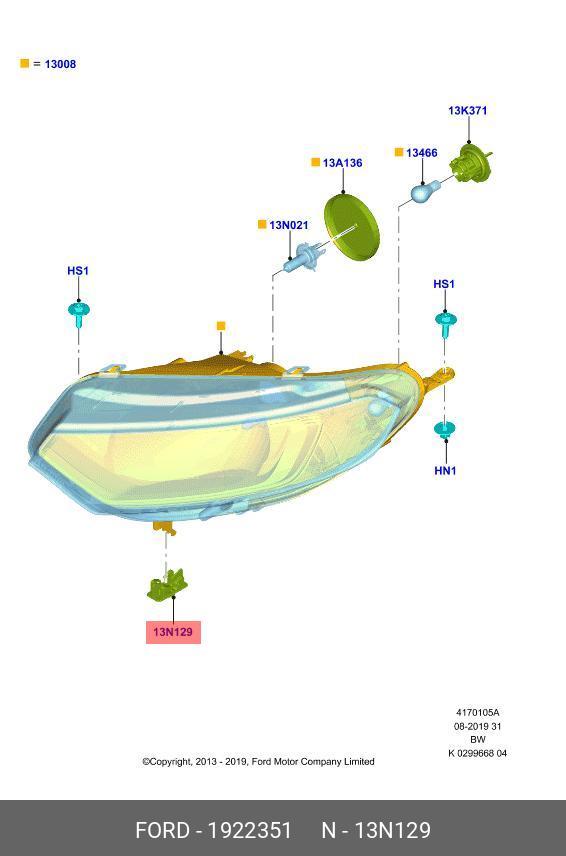 1922351 FORD зажим крепления фары!\ Ford Fiesta 08>