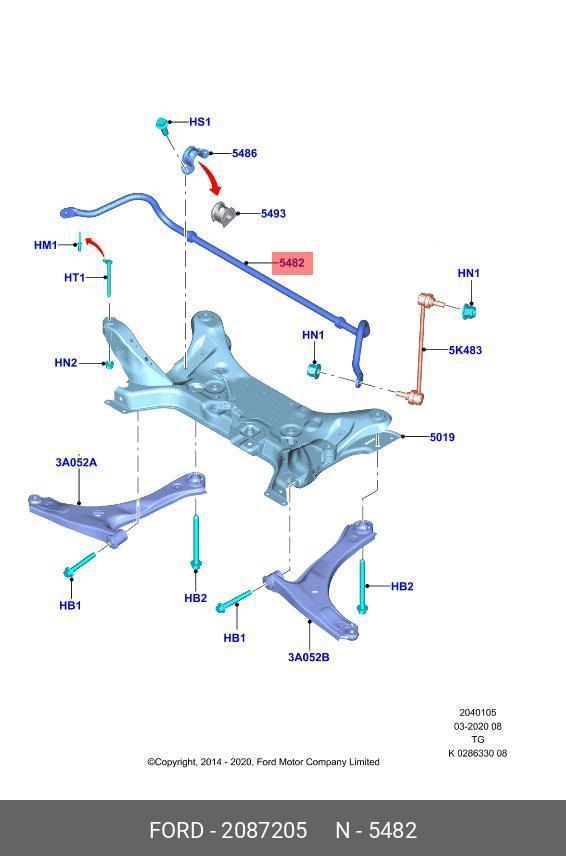 2087205 FORD cтабилизатор поперечной устойчивости передний!\ Ford Transit 14>