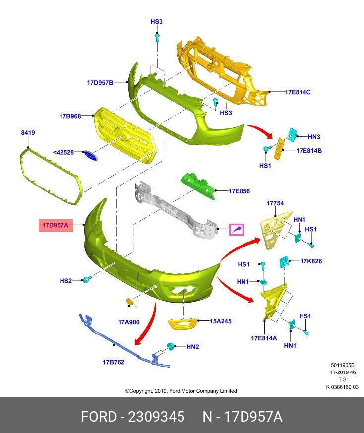 2309345 FORD бампер передний!\ Ford Transit 14>