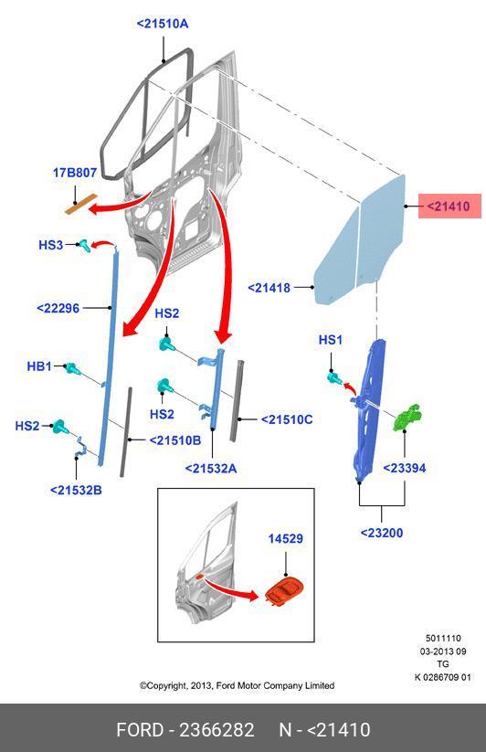2366282 FORD СТЕКЛО ОПУСКНОЕ ПЕРЕДНЕЙ ЛЕВОЙ ДВЕРИ (ДЛЯ А/M FORD TRANSIT 2014Г.)