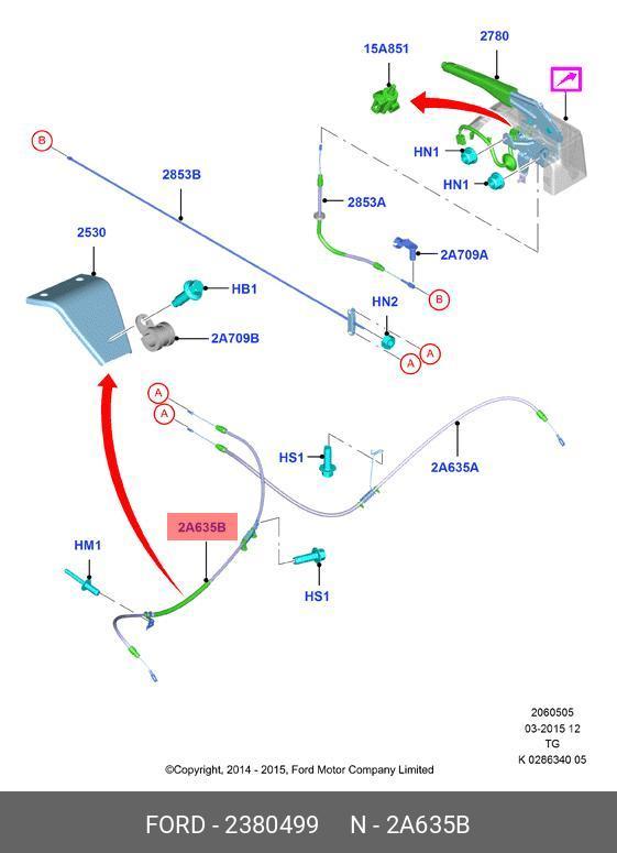 2 380 499 FORD Трос стояночного тормоза FORD Transit (14-) левый OE