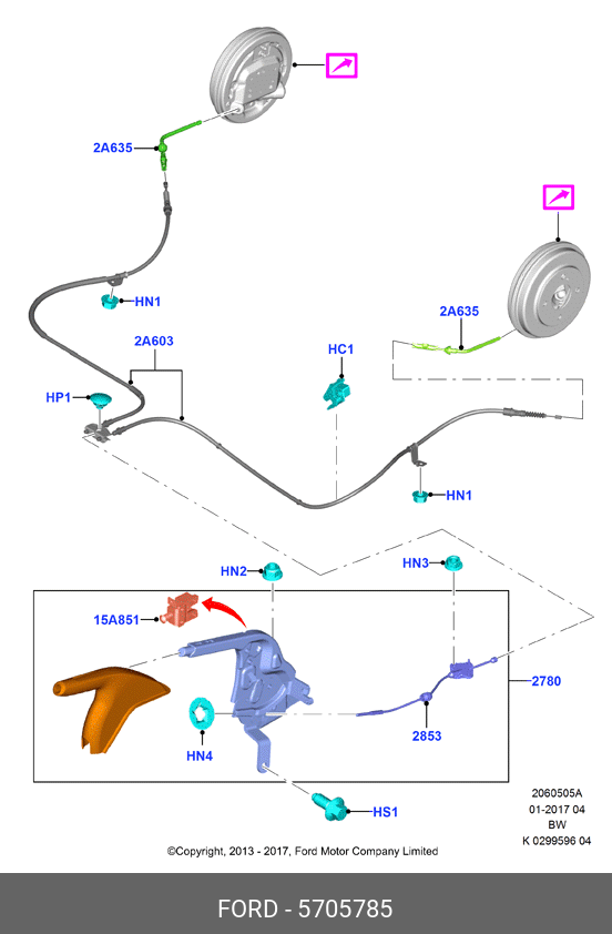 5705785 FORD трос ручного тормоза! задний\ Ford Ecosport 11>