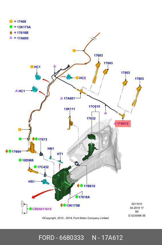 6 680 333 FORD Штуцер FORD Focus шланга бачка омывателя (тройник) FORD