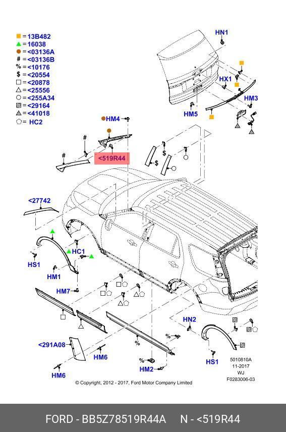 BB5Z 78519R44-A FORD клипса крепления молдинга! комплект\ Ford Explorer 11>